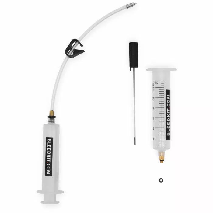 Bleedkit.com’s Basic edition kit includes bare essentials for bleeding flat bar Shimano hydraulic brakes. Oil and bleed block not included.